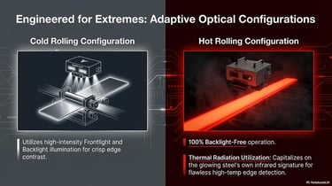 100% contactless dimensional control and edge tracking with micron-level accuracy (±0.25mm)—performing flawlessly even at 1000°C and 25 m/s line speeds.